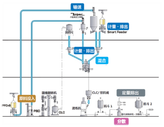 為動(dòng)力電池上游正負(fù)極材料企業(yè)提供包括投料,計(jì)量配料,燒結(jié),氣力輸送,粉碎,混合,篩分,包裝,提供無(wú)揚(yáng)塵省人力無(wú)異物混入的全自動(dòng)生產(chǎn)線。